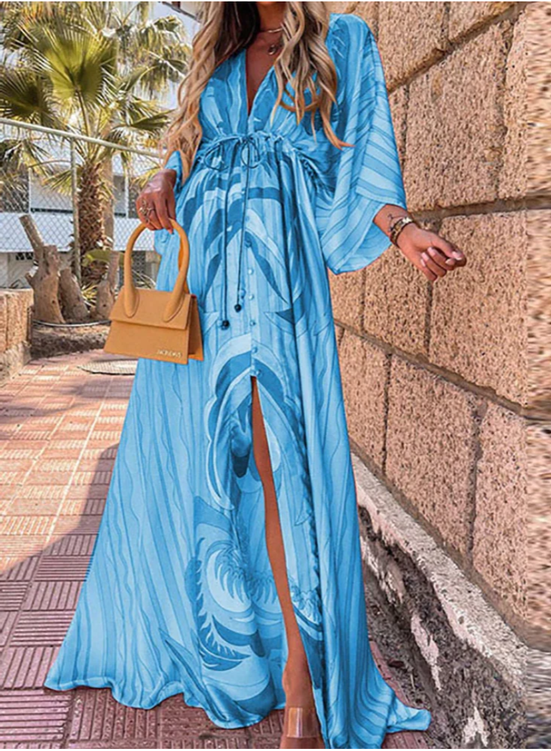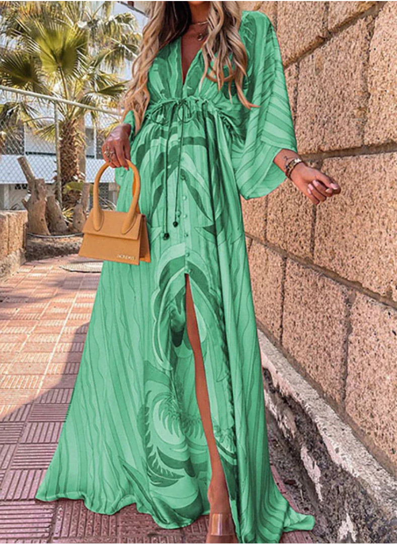 • Design : Robe longue à cordon de serrage sous poitrine et manches larges