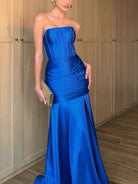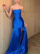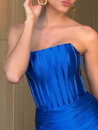 Robe Longue Bustier Bleue | Satin Élégant | Silhouette Sirène & Taille Sculptée