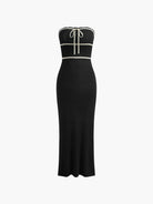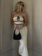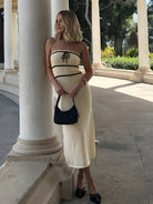 Robe Longue Bustier | Crème & Noir | Minimalisme Élégant