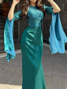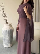 Robe Longue | Drapée avec Manches Fluides | Élégance de Soirée