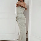 Robe Longue Drapée | Élégance Satinée et Silhouette Sculptée