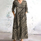 Robe Longue Élégante à Rayures Graphiques | Confort et Modernité