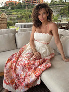 Une robe longue au charme naturel avec son bustier délicatement festonné et sa jupe fluide à imprimé floral éclatant.