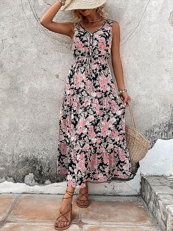 Robe Longue Fleurie Sans Manches | Fraîche et Romantique