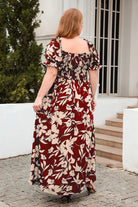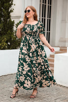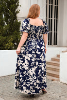 Cette robe longue à smocks florale offre un parfait équilibre entre confort et féminité.