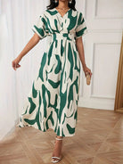 Détails : imprimé graphique, manches courtes, décolleté en V, ceinture assortie