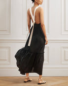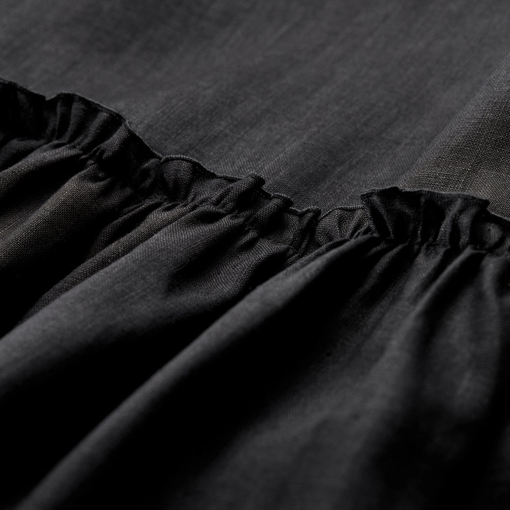 Robe Longue Noire | Lin Léger | Bretelles Contrastées & Bas Volanté