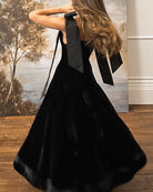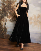 Robe Longue Noire | Velours Élégant | Décolleté Carré & Finition Chic