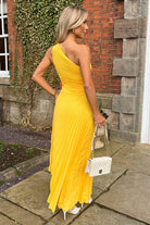 Robe Longue Plissée Jaune | Polyester | Élégance Asymétrique & Style Lumineux