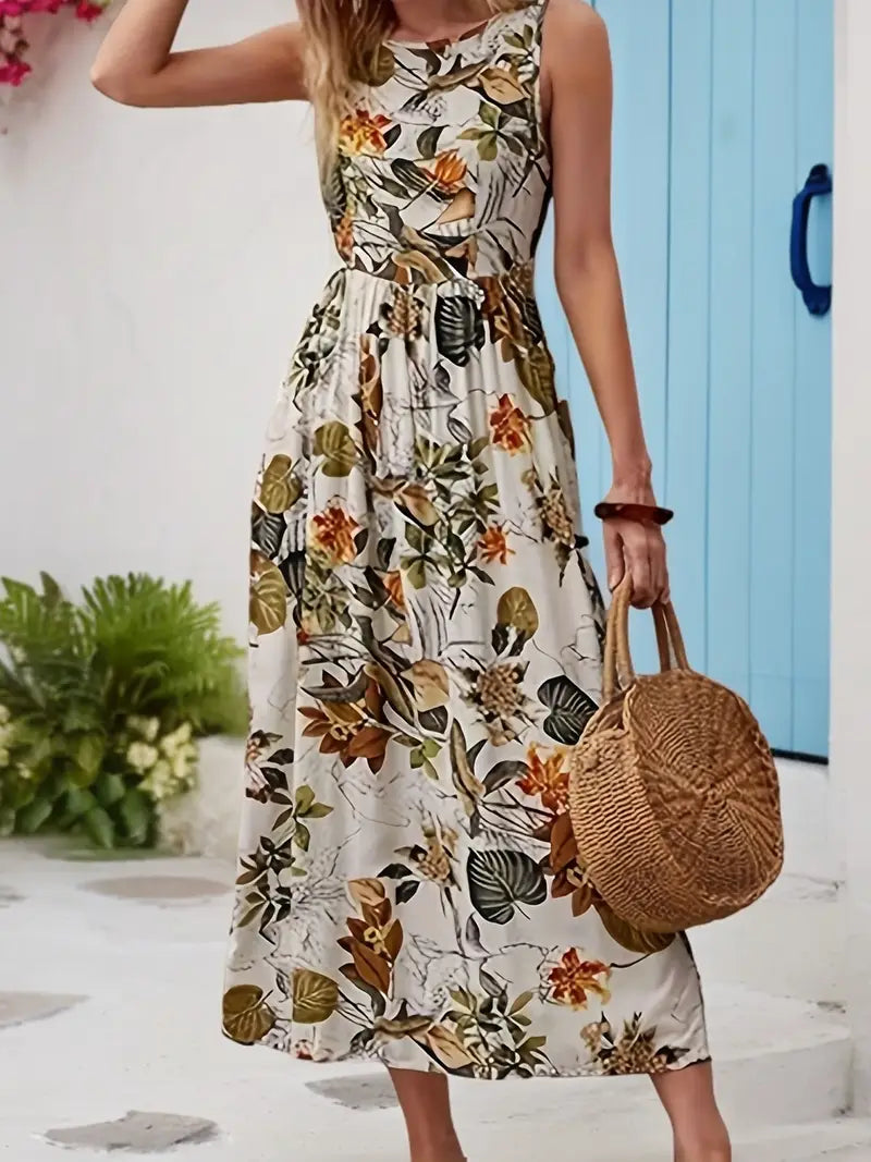 Robe Longue Sans Manches Imprimé Tropical | Fraîche et Naturelle