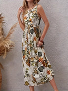 Invitez l’été dans votre garde-robe avec cette robe longue sans manches à imprimé tropical, parfaite pour des journées ensoleillées.