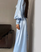 Robe Longue Satinée Bleu Ciel | Élégance Intemporelle