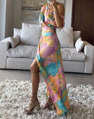 Cette robe longue multicolore est une explosion de fraîcheur et de féminité.