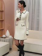Robe Maille Côtelée Ivoire | Volants & Boutons | Élégance Romantique d’Automne