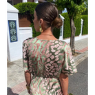 Cette somptueuse robe maxi à imprimé floral audacieux est parfaite pour les occasions élégantes et les soirées. Le décolleté profond en V et le drapé élégant mettent en valeur votre silhouette avec raffinement. Le tissu léger et fluide offre un look luxueux et un confort maximal, même lors des journées chaudes.