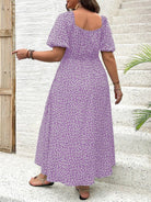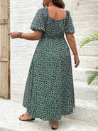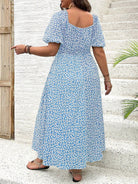 Cette robe midi à fleurs séduit par sa coupe flatteuse et ses manches bouffantes romantiques.
