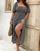 Dotée d’un col carré et d’une fente subtile, elle offre une allure légère et élégante, parfaite pour les journées ensoleillées.