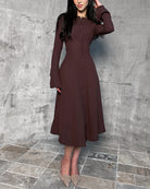 Avec ses manches longues, sa taille cintrée et sa ligne fluide, elle met en valeur la silhouette avec subtilité.