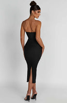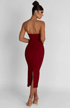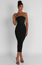 Cette robe bustier midi sculptante sublime votre silhouette avec sa coupe ajustée et son design minimaliste.