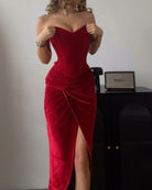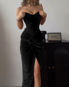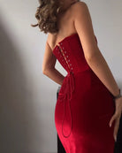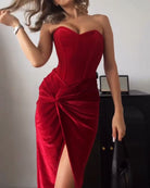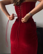 Robe Midi Bustier | Velours | Drapée et Structurée