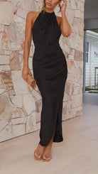 Robe Midi Drapée à Col Halter | Élégante et Fluide