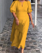 Robe Midi Élégante | Manches Bouffantes | Chic & Féminine