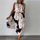 Cette robe midi sans manches à imprimé floral et noir est parfaite pour allier confort, féminité et originalité.