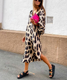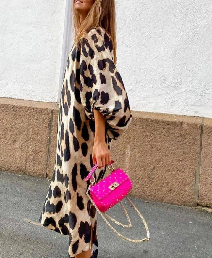 Cette robe midi à imprimé léopard est la pièce parfaite pour allier confort et caractère.