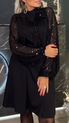 Robe Noire de Soirée | Manches Pailletées | Élégante et Lumineuse