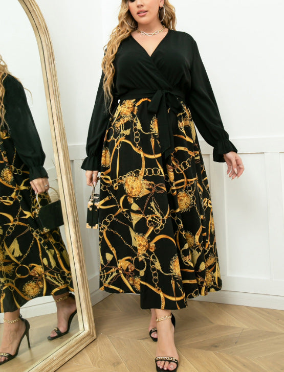 Robe Portefeuille Élégante | Motif Chaîne | Taille Ceinturée