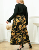• Design : Haut uni noir effet cache-cœur avec jupe imprimée chaînes et motifs baroques