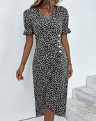 Robe portefeuille ajustée avec jupe légèrement évasée.