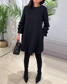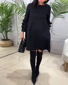 Robe Trapèze Noire | Manches Nouées | Élégante et Moderne