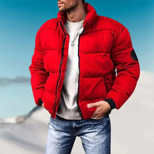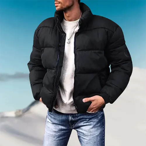 . Design : Doudoune courte avec fermeture éclair et col montant