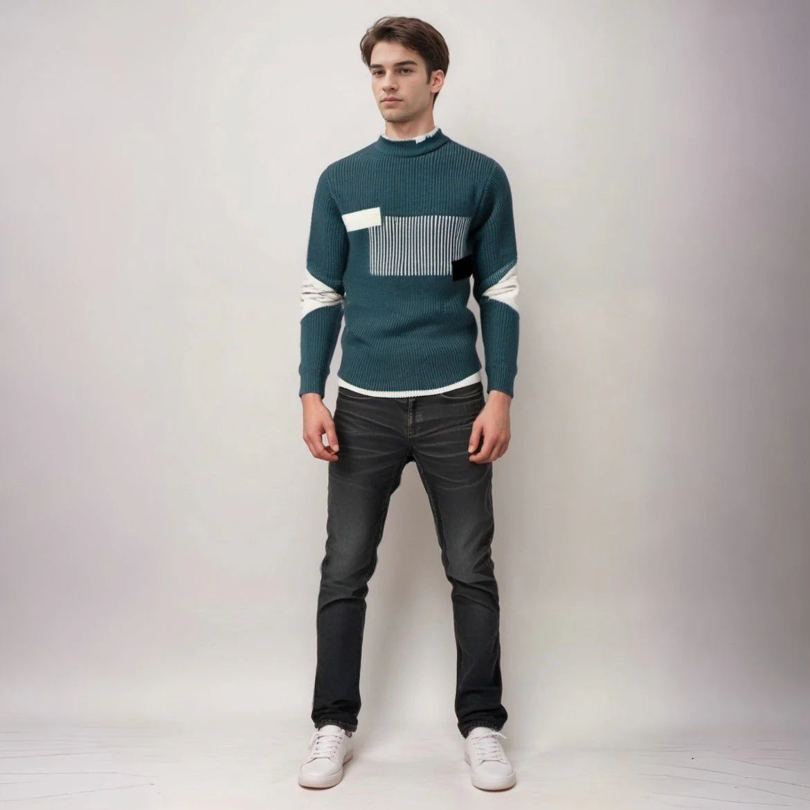 Adoptez un style intemporel avec le pull en maille moderne Marc, parfait pour les journées fraîches. Conçu avec un motif graphique audacieux et des détails texturés, ce pull allie confort et modernité. Sa matière douce et respirante assure une sensation agréable tout au long de la journée. Idéal pour un look chic et décontracté, que ce soit pour une sortie ou une journée au bureau.
