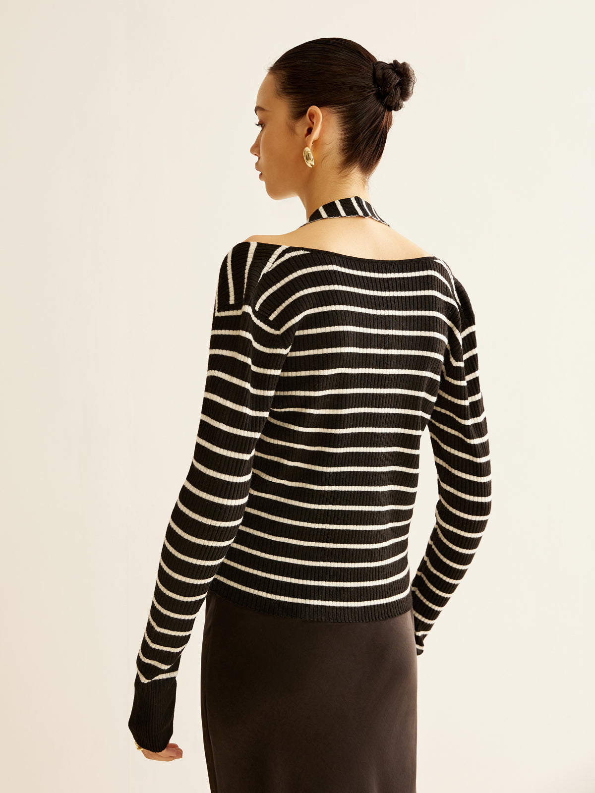 Cardigan Rayé Noir & Blanc | Coupe Ajustée | Élégance Graphique
