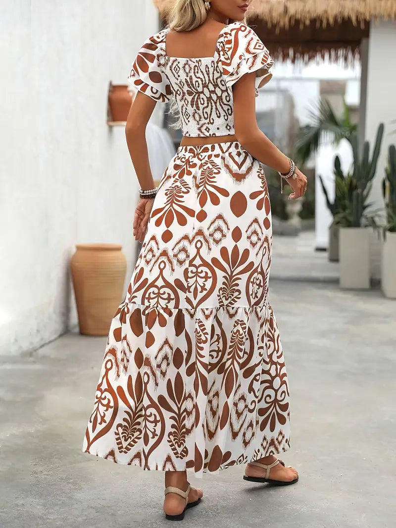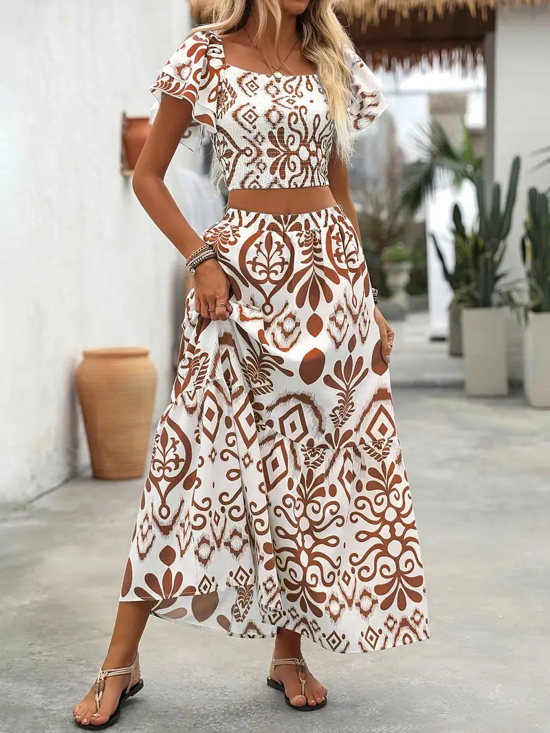Ensemble Bohème Haut Court et Jupe Longue | Frais et Élégant