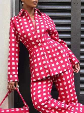 Ensemble Carreaux Structuré | Tissu Fluide & Taille Cintrée | Audacieux et Moderne