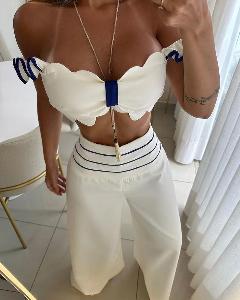 Ensemble Élégance Nautique | Coton | Blanc & Bleu Contrasté