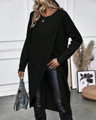 Cette robe pull en maille à coupe asymétrique allie confort et style pour une silhouette moderne et sophistiquée.