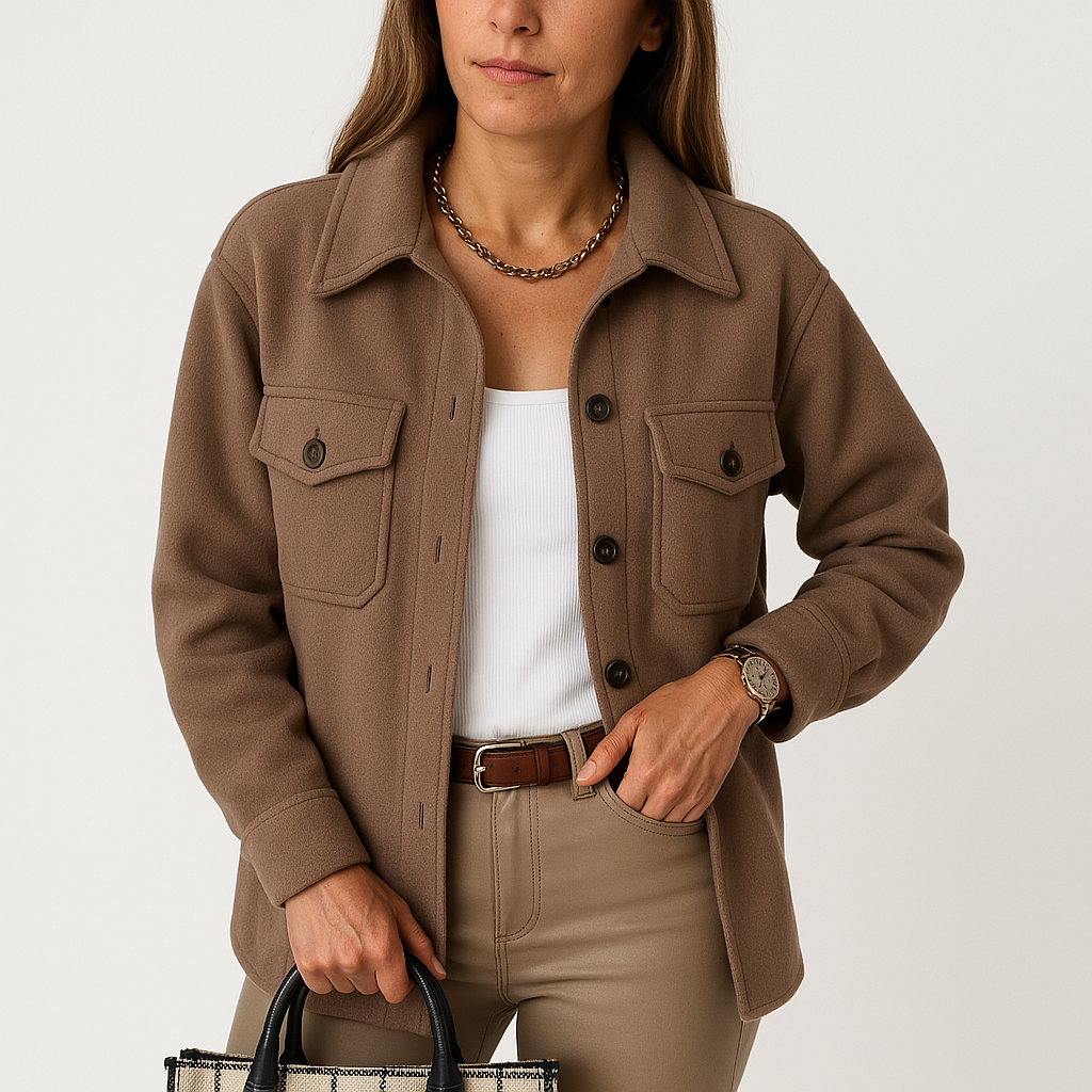 Surchemise Beige Femme | Coupe Droite Oversize | Style Casual & Chic