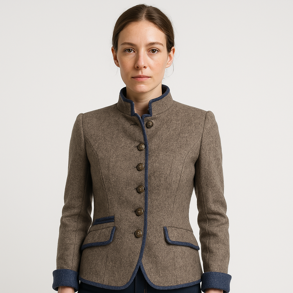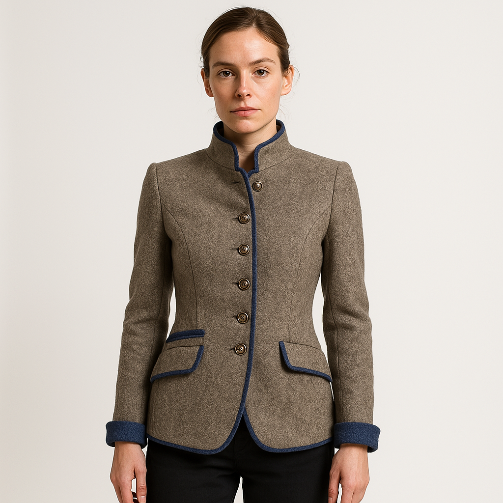 Veste Cintrée Femme | Col Officier & Détails Contrastés | Élégance Structurée