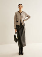 Astuce mode : Portez ce cardigan avec une jupe en cuir et des boucles d’oreilles dorées pour une allure élégante et moderne.